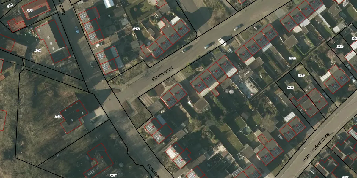 Het perceel waarop Emmastraat 61 staat heeft een oppervlakte van 1,0 ha. Dit is een zeer groot perceel. De perceeloppervlakte wordt geregistreerd door het Kadaster. Gedetailleerde informatie over de maten van dit perceel kunt u vinden in het rapport Kadastrale kaart met maatvoering van Emmastraat 61.