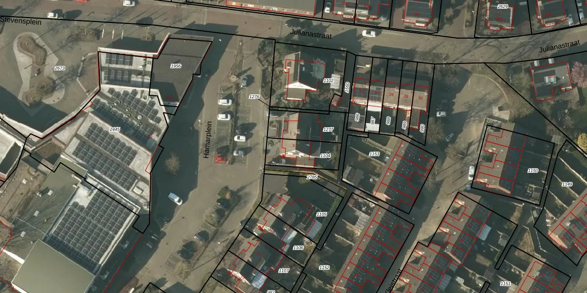 Het perceel waarop Hamarplein 5 staat heeft een oppervlakte van 234 m². Dit is een middelgroot perceel. De perceeloppervlakte wordt geregistreerd door het Kadaster. Gedetailleerde informatie over de maten van dit perceel kunt u vinden in het rapport Kadastrale kaart met maatvoering van Hamarplein 5.