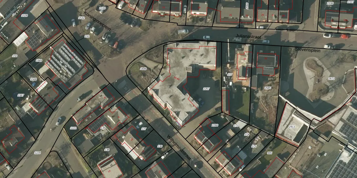 Koninginneplein 38 is gelegen op kadastraal perceel BFD00F2267. Deze kadastrale aanduiding is uniek en wordt gebruikt door het Kadaster om eigendomsrechten en andere zakelijke rechten vast te leggen. Het perceel maakt onderdeel uit van de kadastrale gemeente Belfeld.