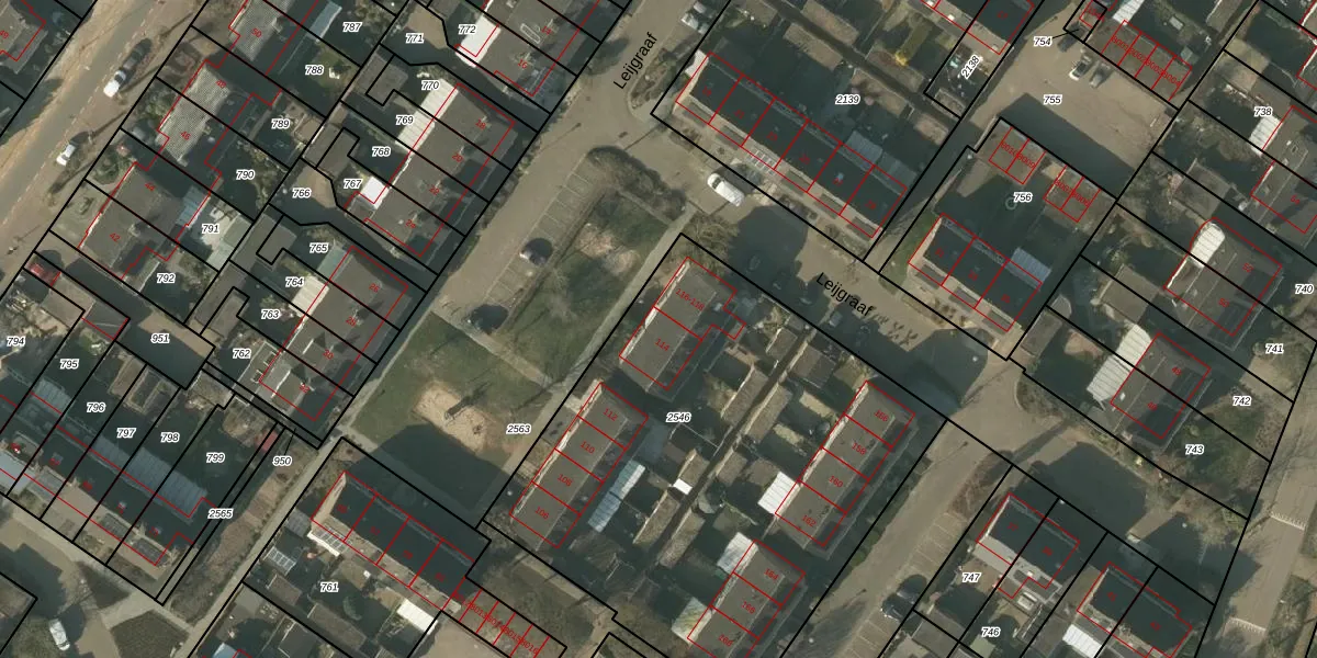 Leijgraaf 114 is gelegen op kadastraal perceel BFD00F2546. Deze kadastrale aanduiding is uniek en wordt gebruikt door het Kadaster om eigendomsrechten en andere zakelijke rechten vast te leggen. Het perceel maakt onderdeel uit van de kadastrale gemeente Belfeld.