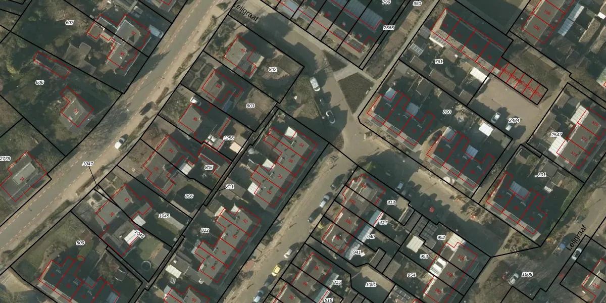 Het perceel waarop Leijgraaf 34 staat heeft een oppervlakte van 2042 m². Dit is een zeer groot perceel. De perceeloppervlakte wordt geregistreerd door het Kadaster. Gedetailleerde informatie over de maten van dit perceel kunt u vinden in het rapport Kadastrale kaart met maatvoering van Leijgraaf 34.