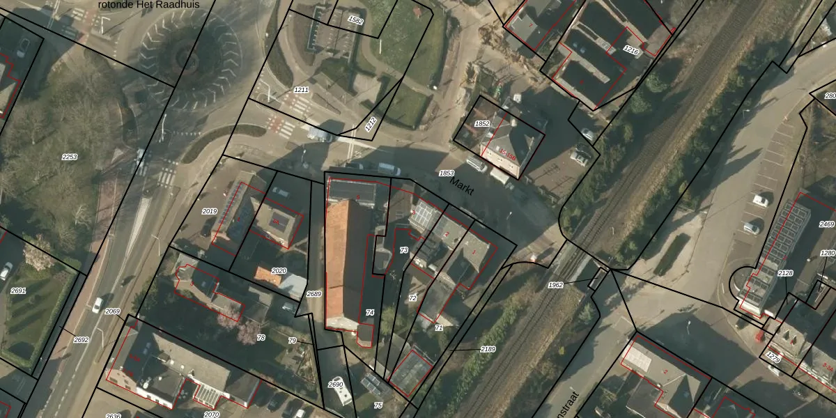 Het perceel waarop Markt 3 staat heeft een oppervlakte van 315 m². Dit is een groot perceel. De perceeloppervlakte wordt geregistreerd door het Kadaster. Gedetailleerde informatie over de maten van dit perceel kunt u vinden in het rapport Kadastrale kaart met maatvoering van Markt 3.