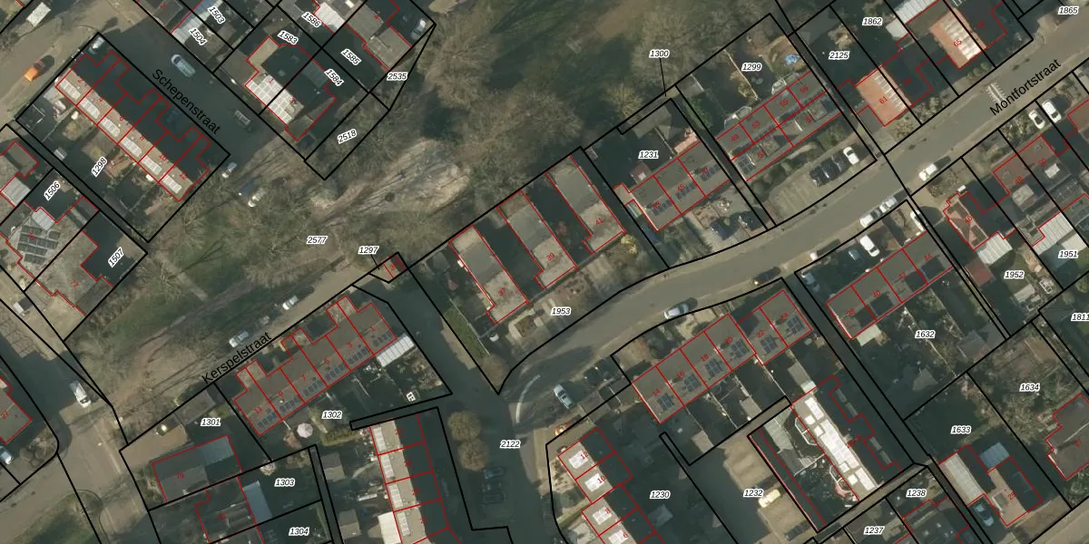 Het perceel waarop Montfortstraat 39 staat heeft een oppervlakte van 1030 m². Dit is een zeer groot perceel. De perceeloppervlakte wordt geregistreerd door het Kadaster. Gedetailleerde informatie over de maten van dit perceel kunt u vinden in het rapport Kadastrale kaart met maatvoering van Montfortstraat 39.