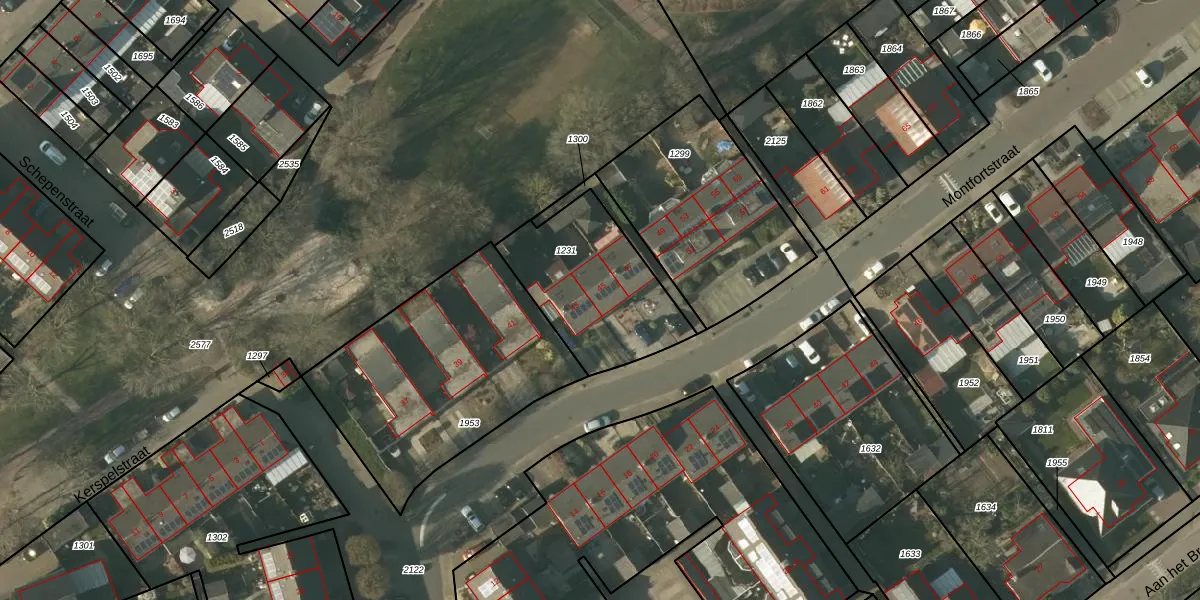 Het perceel waarop Montfortstraat 45 staat heeft een oppervlakte van 535 m². Dit is een groot perceel. De perceeloppervlakte wordt geregistreerd door het Kadaster. Gedetailleerde informatie over de maten van dit perceel kunt u vinden in het rapport Kadastrale kaart met maatvoering van Montfortstraat 45.