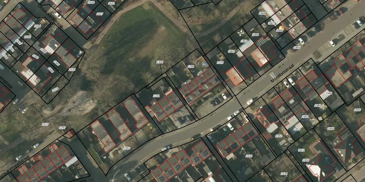 Het perceel waarop Montfortstraat 49 staat heeft een oppervlakte van 720 m². Dit is een groot perceel. De perceeloppervlakte wordt geregistreerd door het Kadaster. Gedetailleerde informatie over de maten van dit perceel kunt u vinden in het rapport Kadastrale kaart met maatvoering van Montfortstraat 49.