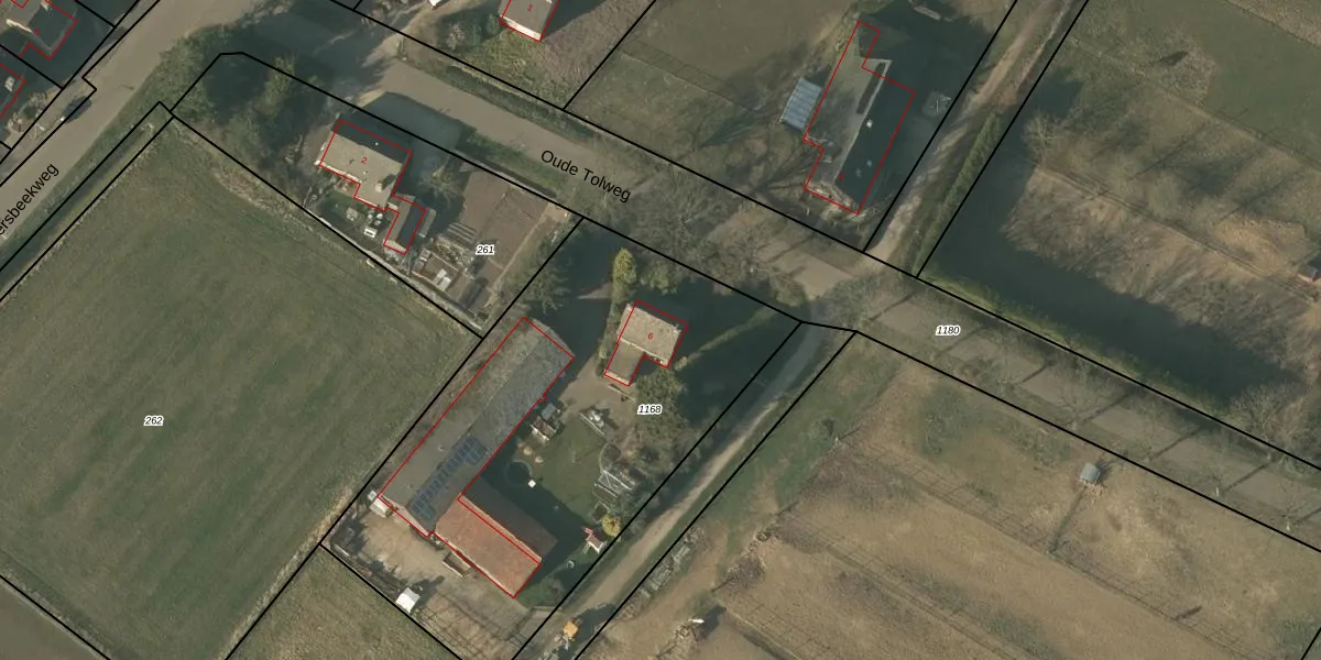 Oude Tolweg 6 is gelegen op kadastraal perceel BFD00E1168. Deze kadastrale aanduiding is uniek en wordt gebruikt door het Kadaster om eigendomsrechten en andere zakelijke rechten vast te leggen. Het perceel maakt onderdeel uit van de kadastrale gemeente Belfeld.