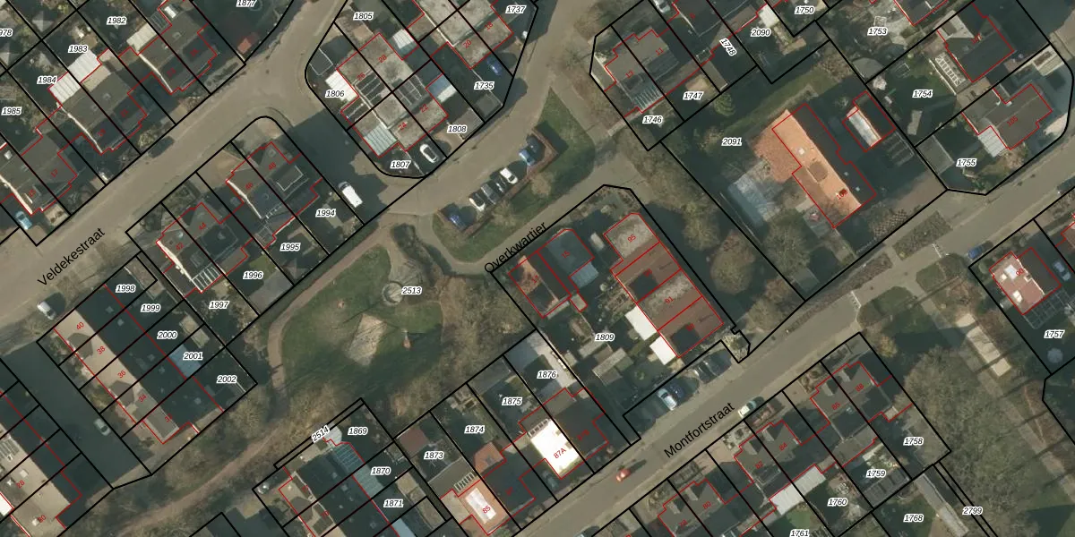 Het perceel waarop Overkwartier 17 staat heeft een oppervlakte van 1093 m². Dit is een zeer groot perceel. De perceeloppervlakte wordt geregistreerd door het Kadaster. Gedetailleerde informatie over de maten van dit perceel kunt u vinden in het rapport Kadastrale kaart met maatvoering van Overkwartier 17.