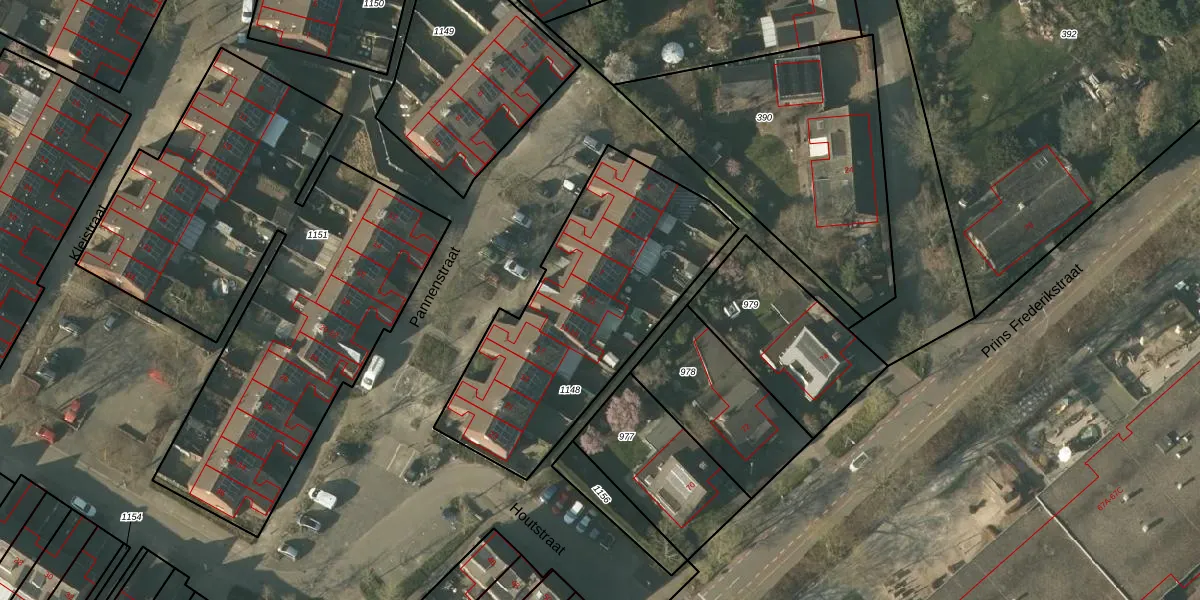 Het perceel waarop Pannenstraat 11 staat heeft een oppervlakte van 1215 m². Dit is een zeer groot perceel. De perceeloppervlakte wordt geregistreerd door het Kadaster. Gedetailleerde informatie over de maten van dit perceel kunt u vinden in het rapport Kadastrale kaart met maatvoering van Pannenstraat 11.