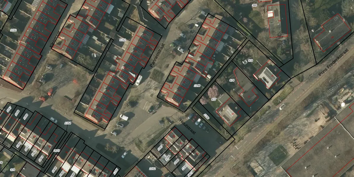 Het perceel waarop Pannenstraat 21 staat heeft een oppervlakte van 1215 m². Dit is een zeer groot perceel. De perceeloppervlakte wordt geregistreerd door het Kadaster. Gedetailleerde informatie over de maten van dit perceel kunt u vinden in het rapport Kadastrale kaart met maatvoering van Pannenstraat 21.