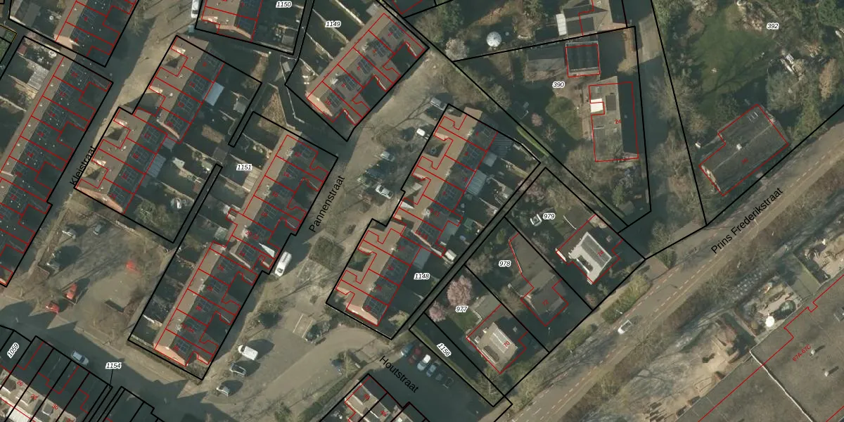 Het perceel waarop Pannenstraat 9 staat heeft een oppervlakte van 1215 m². Dit is een zeer groot perceel. De perceeloppervlakte wordt geregistreerd door het Kadaster. Gedetailleerde informatie over de maten van dit perceel kunt u vinden in het rapport Kadastrale kaart met maatvoering van Pannenstraat 9.