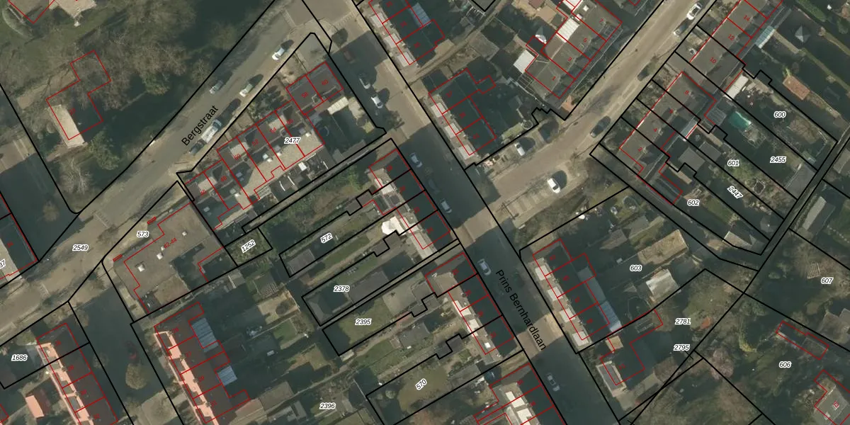 Het perceel waarop Prins Bernhardlaan 22 staat heeft een oppervlakte van 4745 m². Dit is een zeer groot perceel. De perceeloppervlakte wordt geregistreerd door het Kadaster. Gedetailleerde informatie over de maten van dit perceel kunt u vinden in het rapport Kadastrale kaart met maatvoering van Prins Bernhardlaan 22.