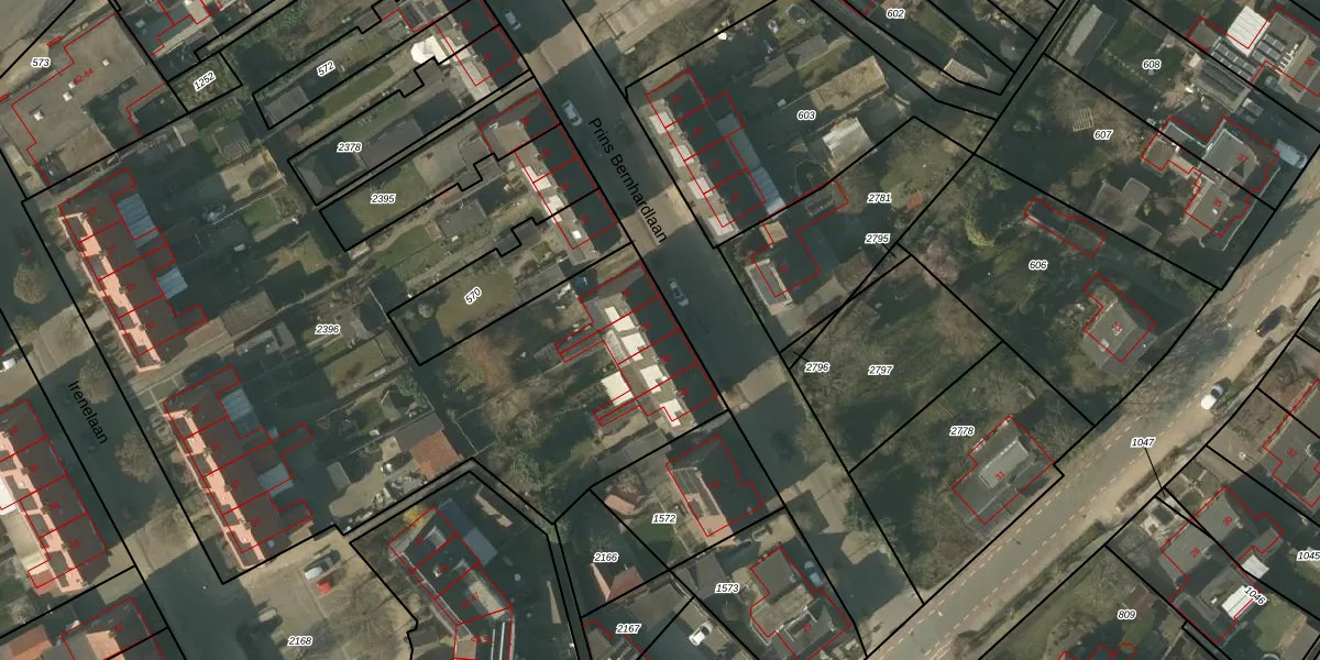 Het perceel waarop Prins Bernhardlaan 36 staat heeft een oppervlakte van 4745 m². Dit is een zeer groot perceel. De perceeloppervlakte wordt geregistreerd door het Kadaster. Gedetailleerde informatie over de maten van dit perceel kunt u vinden in het rapport Kadastrale kaart met maatvoering van Prins Bernhardlaan 36.