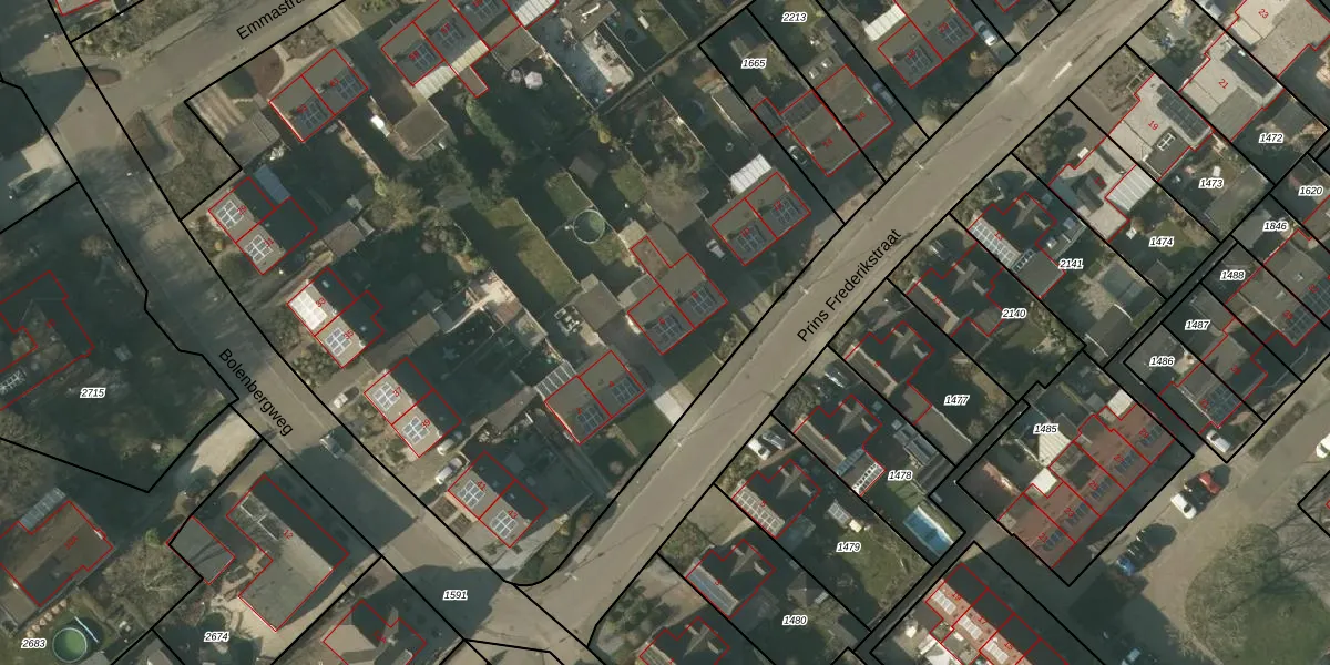 Het perceel waarop Prins Frederikstraat 6 staat heeft een oppervlakte van 1,0 ha. Dit is een zeer groot perceel. De perceeloppervlakte wordt geregistreerd door het Kadaster. Gedetailleerde informatie over de maten van dit perceel kunt u vinden in het rapport Kadastrale kaart met maatvoering van Prins Frederikstraat 6.