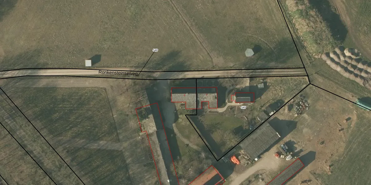 Het perceel waarop Ronkensteinseweg 2 staat heeft een oppervlakte van 1,5 ha. Dit is een zeer groot perceel. De perceeloppervlakte wordt geregistreerd door het Kadaster. Gedetailleerde informatie over de maten van dit perceel kunt u vinden in het rapport Kadastrale kaart met maatvoering van Ronkensteinseweg 2.