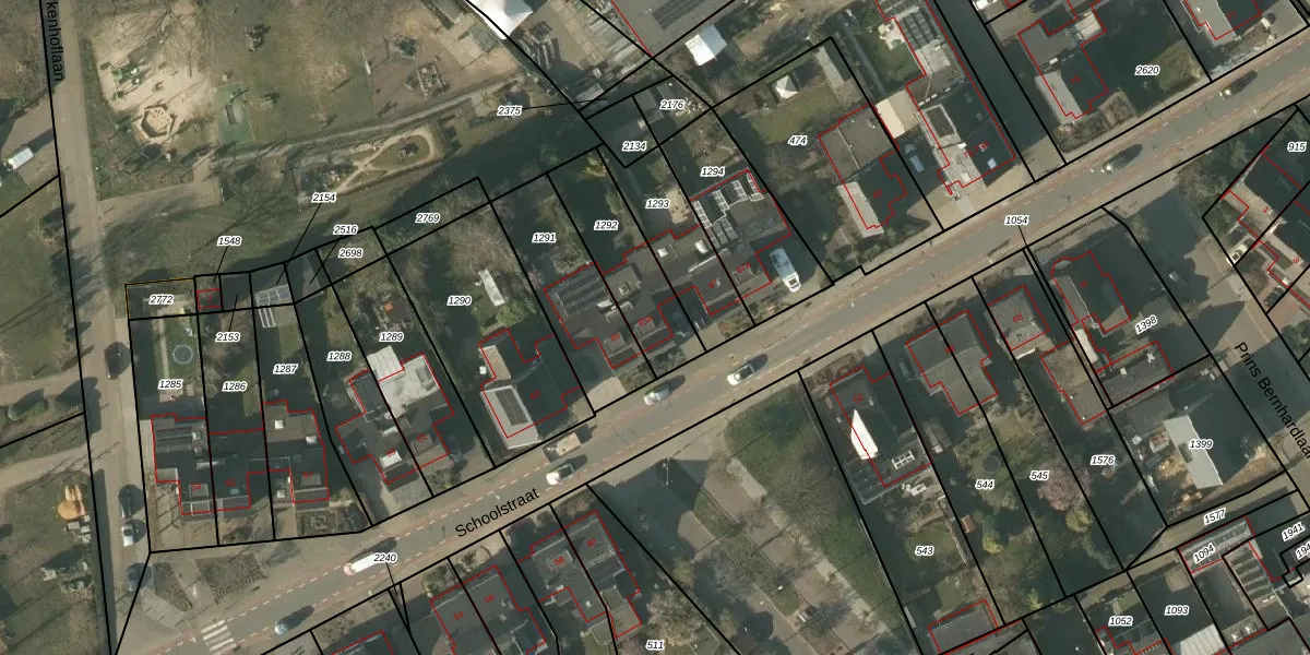 Het perceel waarop Schoolstraat 65-A staat heeft een oppervlakte van 307 m². Dit is een groot perceel. De perceeloppervlakte wordt geregistreerd door het Kadaster. Gedetailleerde informatie over de maten van dit perceel kunt u vinden in het rapport Kadastrale kaart met maatvoering van Schoolstraat 65-A.