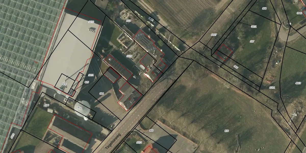 Het perceel waarop Tegelseweg 53 staat heeft een oppervlakte van 1100 m². Dit is een zeer groot perceel. De perceeloppervlakte wordt geregistreerd door het Kadaster. Gedetailleerde informatie over de maten van dit perceel kunt u vinden in het rapport Kadastrale kaart met maatvoering van Tegelseweg 53.