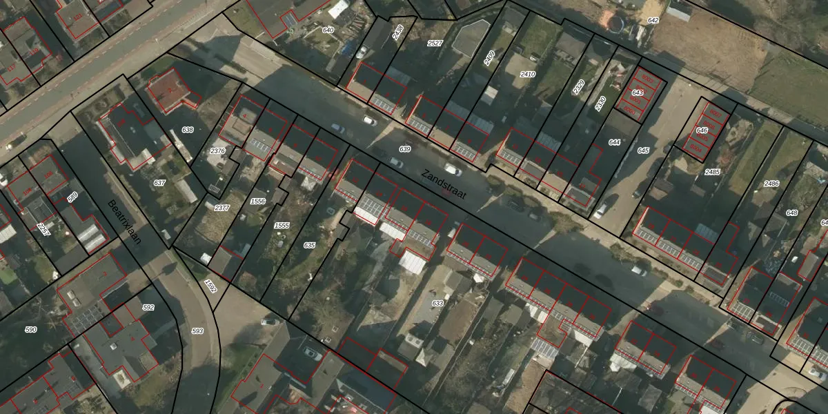 Zandstraat 16 is gelegen op kadastraal perceel BFD00F633. Deze kadastrale aanduiding is uniek en wordt gebruikt door het Kadaster om eigendomsrechten en andere zakelijke rechten vast te leggen. Het perceel maakt onderdeel uit van de kadastrale gemeente Belfeld.