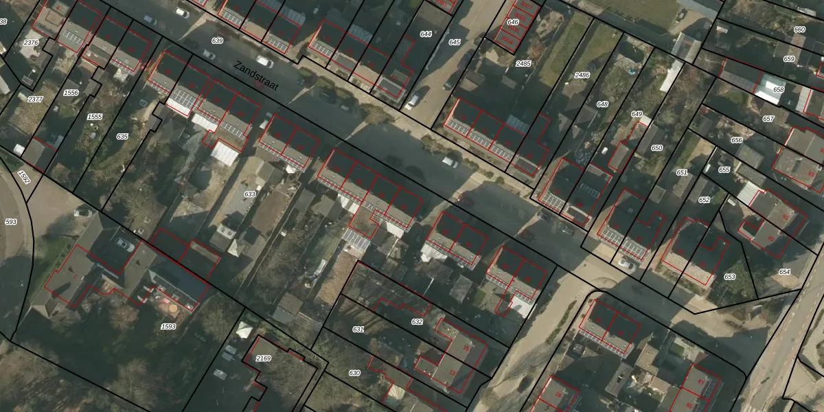 Het perceel waarop Zandstraat 30 staat heeft een oppervlakte van 3745 m². Dit is een zeer groot perceel. De perceeloppervlakte wordt geregistreerd door het Kadaster. Gedetailleerde informatie over de maten van dit perceel kunt u vinden in het rapport Kadastrale kaart met maatvoering van Zandstraat 30.