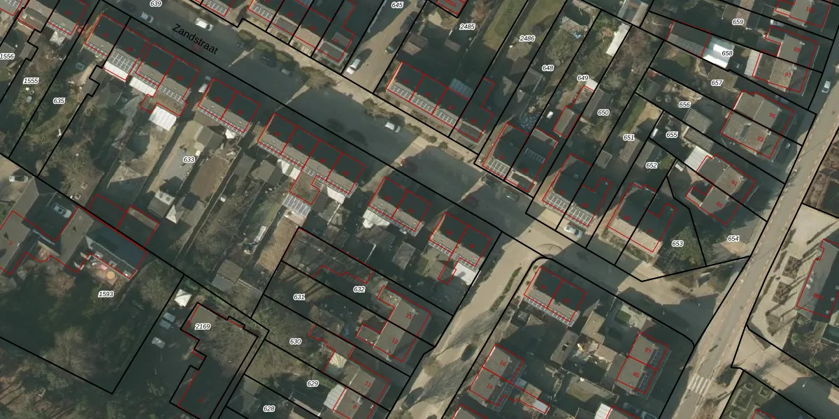 Het perceel waarop Zandstraat 34 staat heeft een oppervlakte van 3745 m². Dit is een zeer groot perceel. De perceeloppervlakte wordt geregistreerd door het Kadaster. Gedetailleerde informatie over de maten van dit perceel kunt u vinden in het rapport Kadastrale kaart met maatvoering van Zandstraat 34.