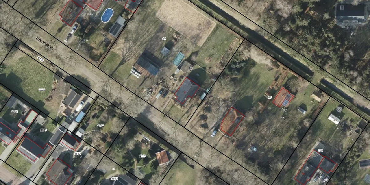 Het perceel waarop Eikenlaan 2 staat heeft een oppervlakte van 3320 m². Dit is een zeer groot perceel. De perceeloppervlakte wordt geregistreerd door het Kadaster. Gedetailleerde informatie over de maten van dit perceel kunt u vinden in het rapport Kadastrale kaart met maatvoering van Eikenlaan 2.