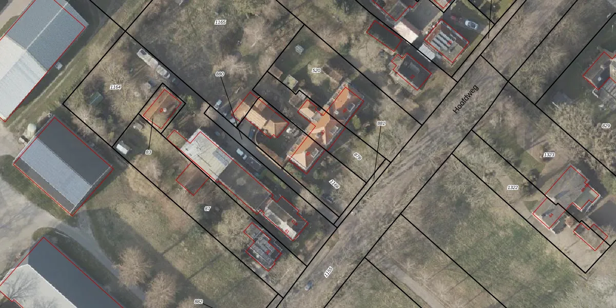 Het perceel waarop Hoofdweg 45 staat heeft een oppervlakte van 605 m². Dit is een groot perceel. De perceeloppervlakte wordt geregistreerd door het Kadaster. Gedetailleerde informatie over de maten van dit perceel kunt u vinden in het rapport Kadastrale kaart met maatvoering van Hoofdweg 45.