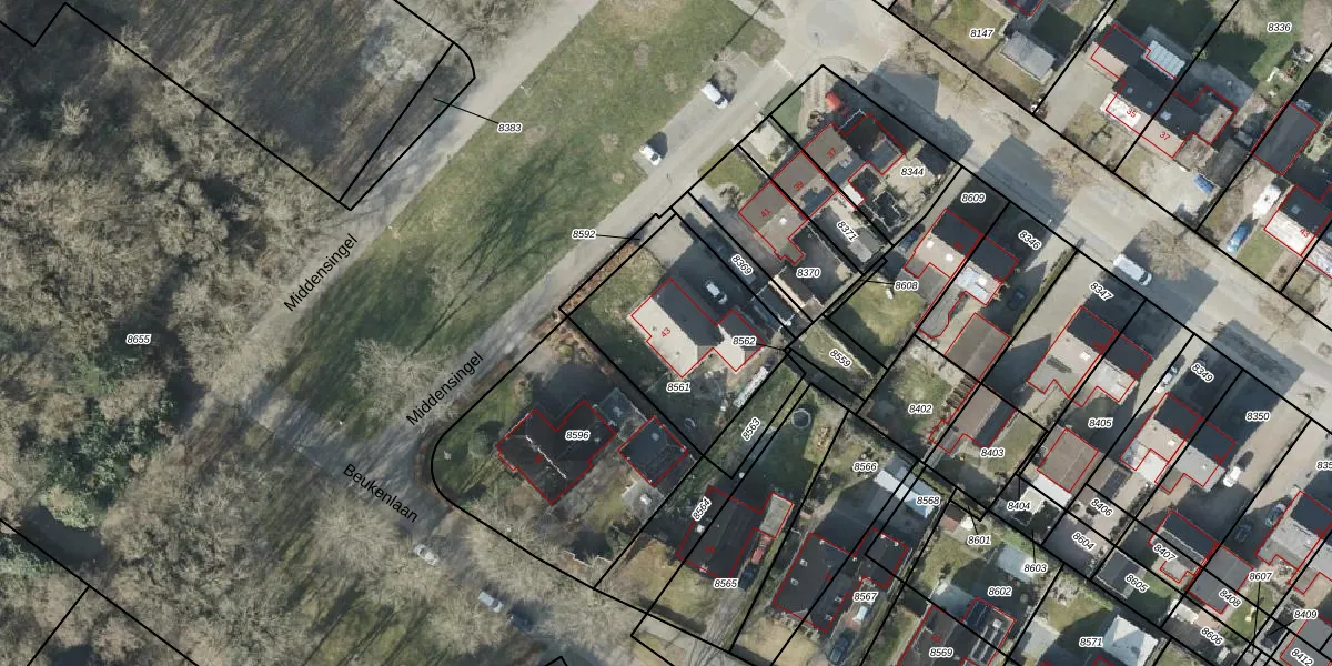 Het perceel waarop Middensingel 43 staat heeft een oppervlakte van 622 m². Dit is een groot perceel. De perceeloppervlakte wordt geregistreerd door het Kadaster. Gedetailleerde informatie over de maten van dit perceel kunt u vinden in het rapport Kadastrale kaart met maatvoering van Middensingel 43.