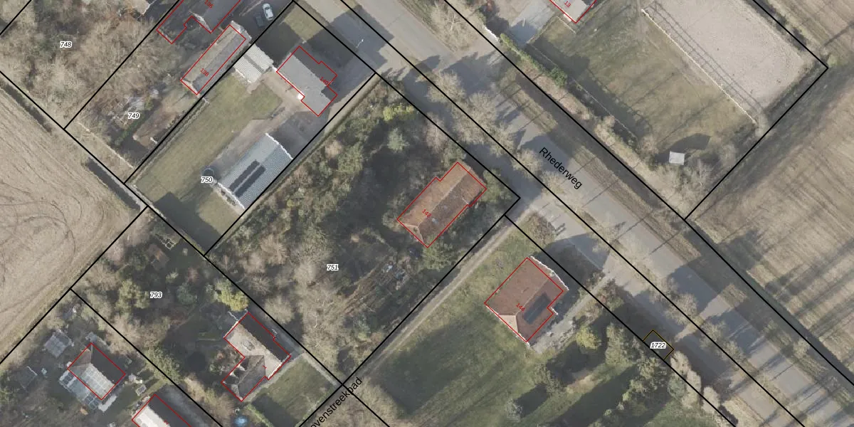 Rhederweg 142 is gelegen op kadastraal perceel BLW00L751. Deze kadastrale aanduiding is uniek en wordt gebruikt door het Kadaster om eigendomsrechten en andere zakelijke rechten vast te leggen. Het perceel maakt onderdeel uit van de kadastrale gemeente Bellingwolde.
