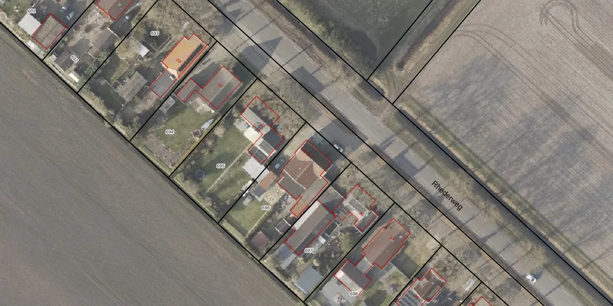 Rhederweg 26 is gelegen op kadastraal perceel BLW00L696. Deze kadastrale aanduiding is uniek en wordt gebruikt door het Kadaster om eigendomsrechten en andere zakelijke rechten vast te leggen. Het perceel maakt onderdeel uit van de kadastrale gemeente Bellingwolde.