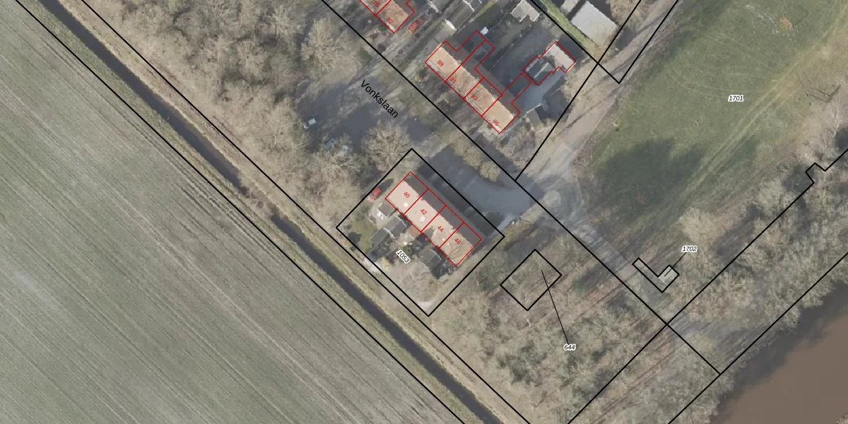 Vonkslaan 42 is gelegen op kadastraal perceel BLW00L1053. Deze kadastrale aanduiding is uniek en wordt gebruikt door het Kadaster om eigendomsrechten en andere zakelijke rechten vast te leggen. Het perceel maakt onderdeel uit van de kadastrale gemeente Bellingwolde.