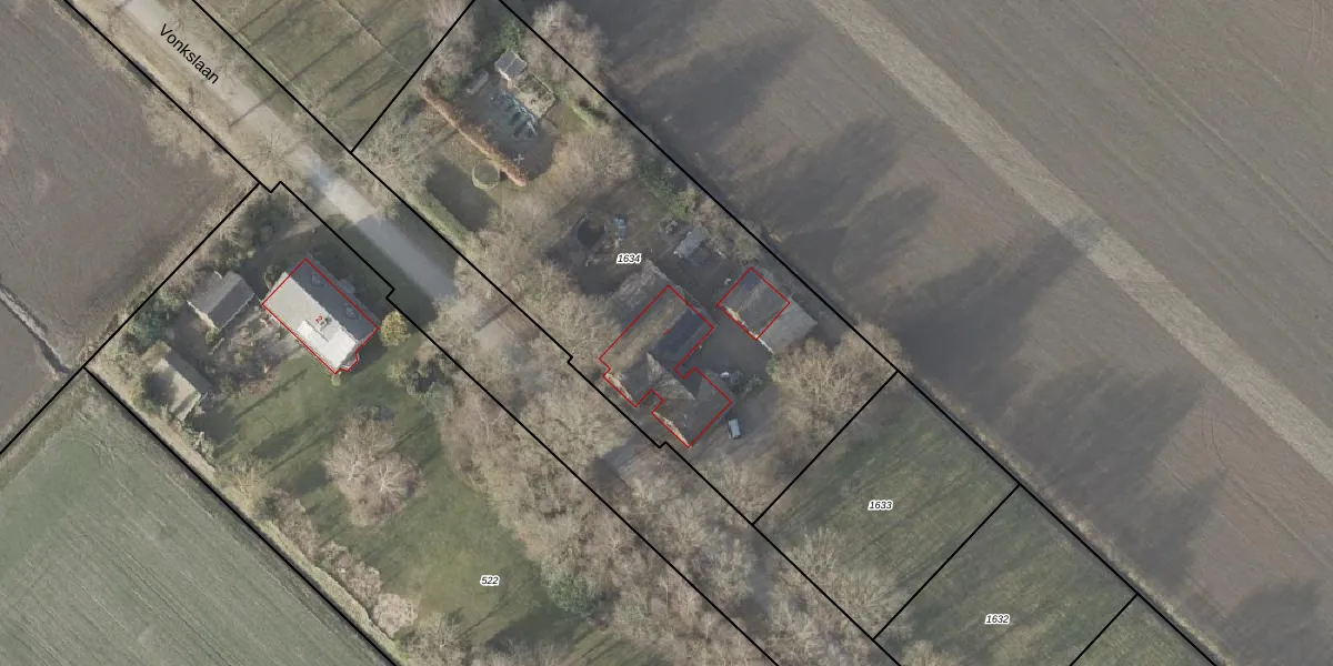 Vonkslaan 7 is gelegen op kadastraal perceel BLW00L1634. Deze kadastrale aanduiding is uniek en wordt gebruikt door het Kadaster om eigendomsrechten en andere zakelijke rechten vast te leggen. Het perceel maakt onderdeel uit van de kadastrale gemeente Bellingwolde.