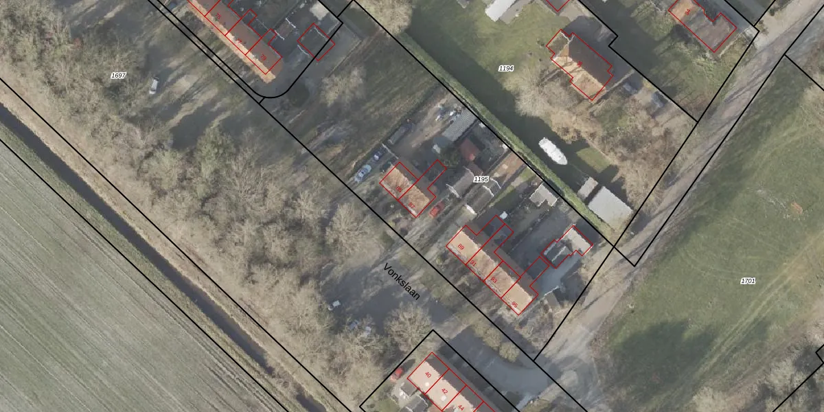 Vonkslaan 87 is gelegen op kadastraal perceel BLW00L1195. Deze kadastrale aanduiding is uniek en wordt gebruikt door het Kadaster om eigendomsrechten en andere zakelijke rechten vast te leggen. Het perceel maakt onderdeel uit van de kadastrale gemeente Bellingwolde.