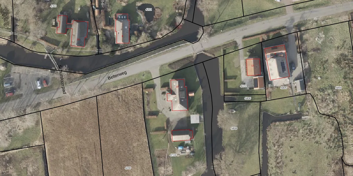 Belterweg 13 is gelegen op kadastraal perceel WNP00D4716. Deze kadastrale aanduiding is uniek en wordt gebruikt door het Kadaster om eigendomsrechten en andere zakelijke rechten vast te leggen. Het perceel maakt onderdeel uit van de kadastrale gemeente Wanneperveen.