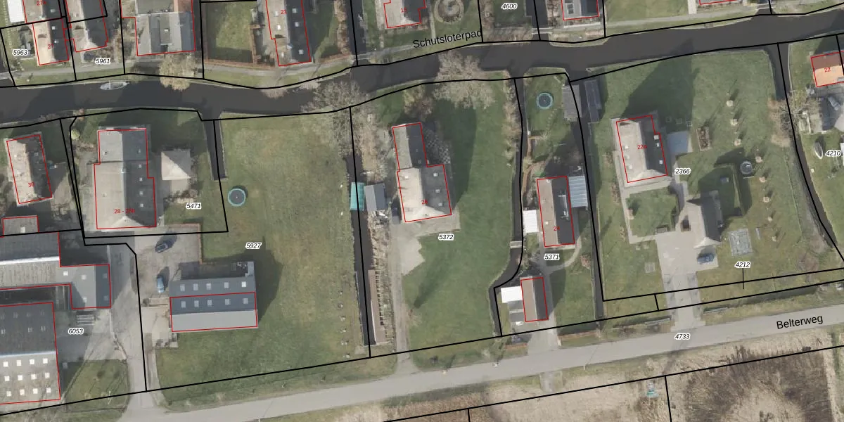 Het perceel waarop Belterweg 26 staat heeft een oppervlakte van 2265 m². Dit is een zeer groot perceel. De perceeloppervlakte wordt geregistreerd door het Kadaster. Gedetailleerde informatie over de maten van dit perceel kunt u vinden in het rapport Kadastrale kaart met maatvoering van Belterweg 26.