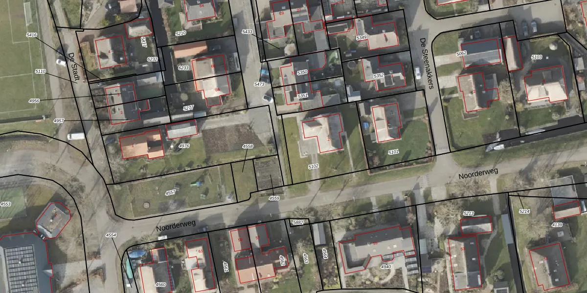 Het perceel waarop Noorderweg 2-a staat heeft een oppervlakte van 660 m². Dit is een groot perceel. De perceeloppervlakte wordt geregistreerd door het Kadaster. Gedetailleerde informatie over de maten van dit perceel kunt u vinden in het rapport Kadastrale kaart met maatvoering van Noorderweg 2-a.