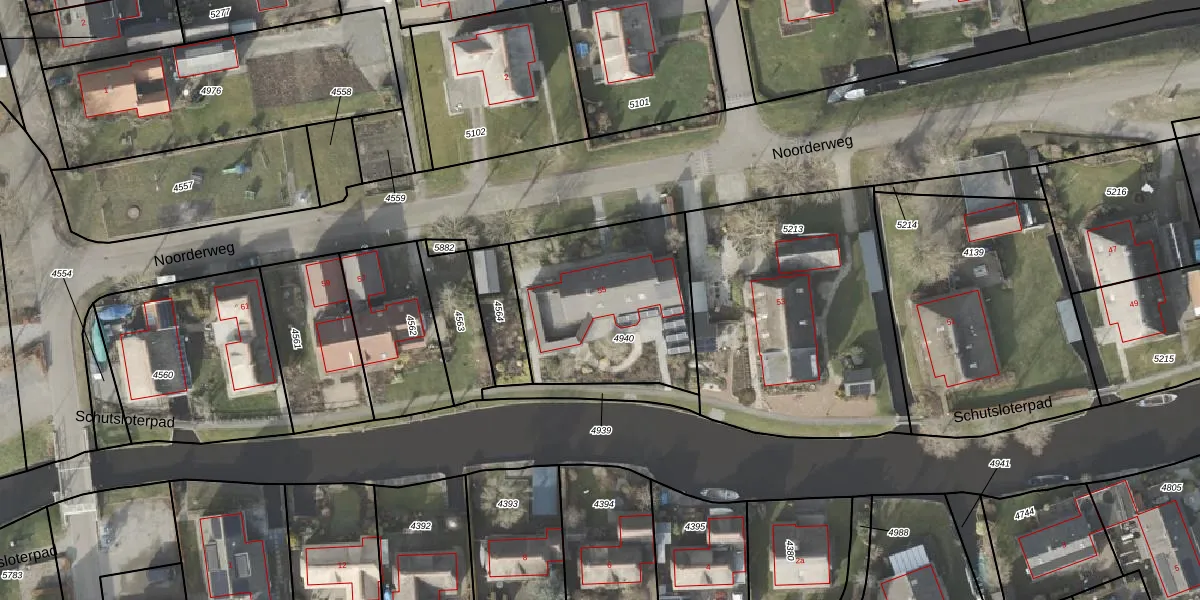 Noorderweg 55 is gelegen op kadastraal perceel WNP00D4940. Deze kadastrale aanduiding is uniek en wordt gebruikt door het Kadaster om eigendomsrechten en andere zakelijke rechten vast te leggen. Het perceel maakt onderdeel uit van de kadastrale gemeente Wanneperveen.