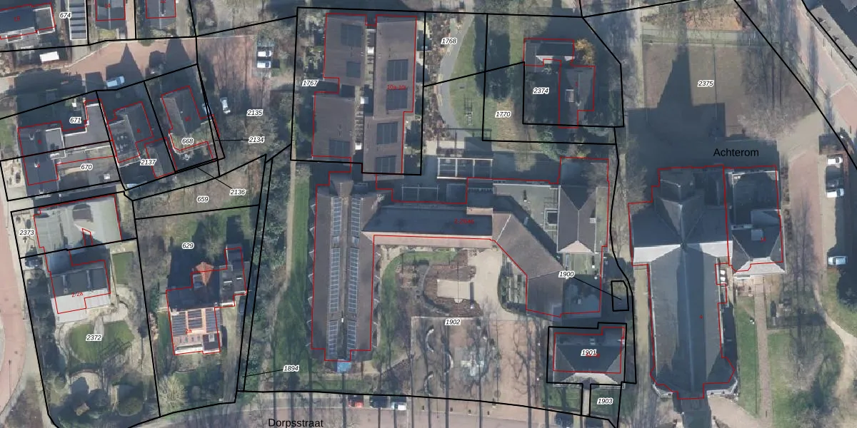 Het perceel waarop Dorpsstraat 2-006 staat heeft een oppervlakte van 4775 m². Dit is een zeer groot perceel. De perceeloppervlakte wordt geregistreerd door het Kadaster. Gedetailleerde informatie over de maten van dit perceel kunt u vinden in het rapport Kadastrale kaart met maatvoering van Dorpsstraat 2-006.