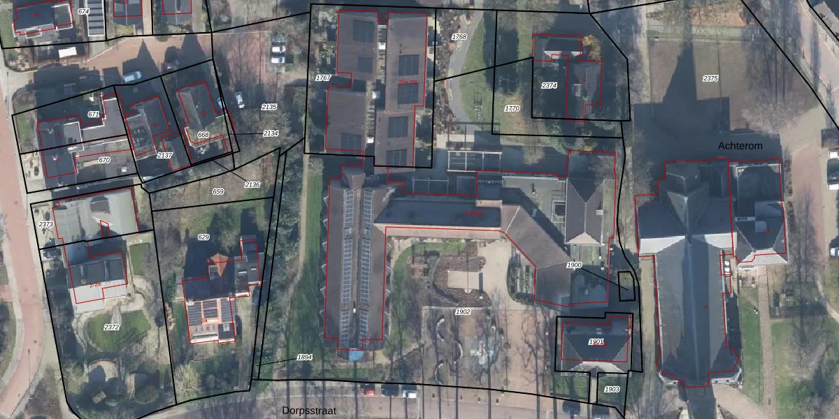 Het perceel waarop Dorpsstraat 2-007 staat heeft een oppervlakte van 4775 m². Dit is een zeer groot perceel. De perceeloppervlakte wordt geregistreerd door het Kadaster. Gedetailleerde informatie over de maten van dit perceel kunt u vinden in het rapport Kadastrale kaart met maatvoering van Dorpsstraat 2-007.