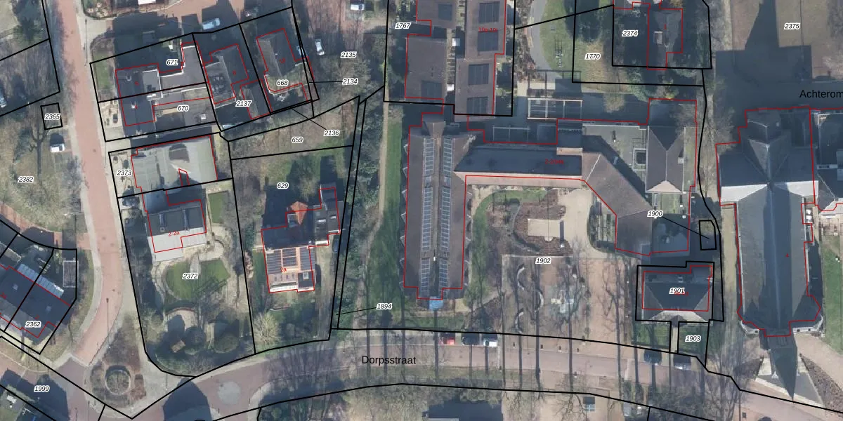 Het perceel waarop Dorpsstraat 2-021 staat heeft een oppervlakte van 4775 m². Dit is een zeer groot perceel. De perceeloppervlakte wordt geregistreerd door het Kadaster. Gedetailleerde informatie over de maten van dit perceel kunt u vinden in het rapport Kadastrale kaart met maatvoering van Dorpsstraat 2-021.