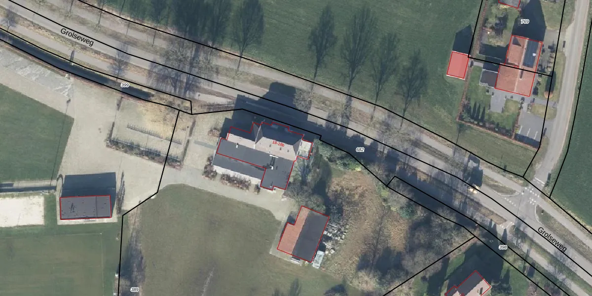 Het perceel waarop Grolseweg 18-a staat heeft een oppervlakte van 7200 m². Dit is een zeer groot perceel. De perceeloppervlakte wordt geregistreerd door het Kadaster. Gedetailleerde informatie over de maten van dit perceel kunt u vinden in het rapport Kadastrale kaart met maatvoering van Grolseweg 18-a.