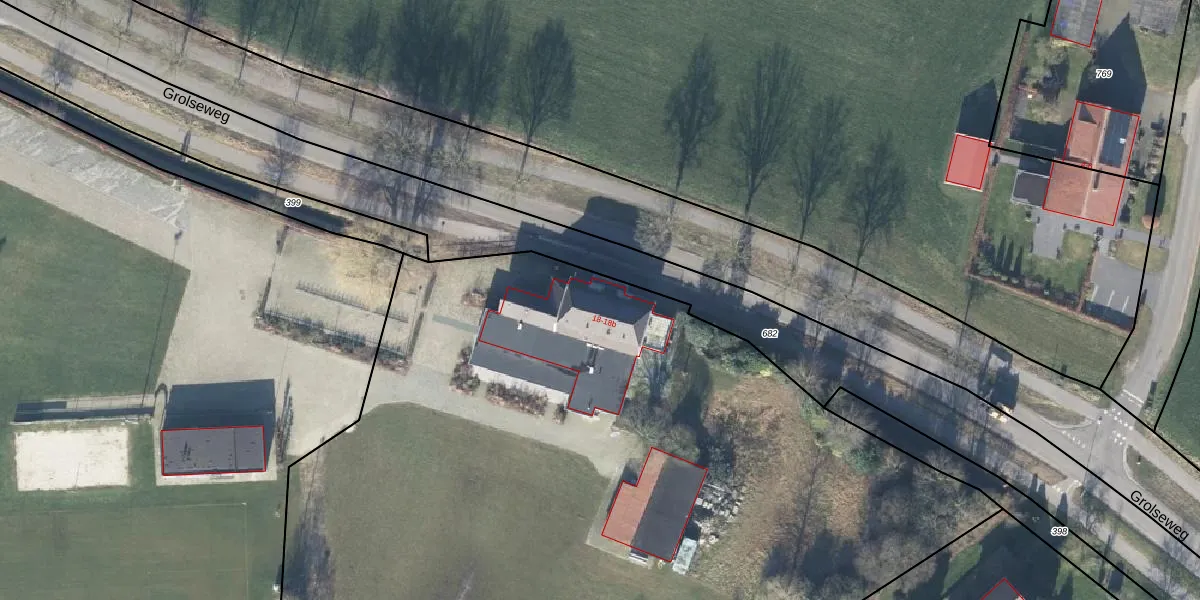 Het perceel waarop Grolseweg 18 staat heeft een oppervlakte van 7200 m². Dit is een zeer groot perceel. De perceeloppervlakte wordt geregistreerd door het Kadaster. Gedetailleerde informatie over de maten van dit perceel kunt u vinden in het rapport Kadastrale kaart met maatvoering van Grolseweg 18.