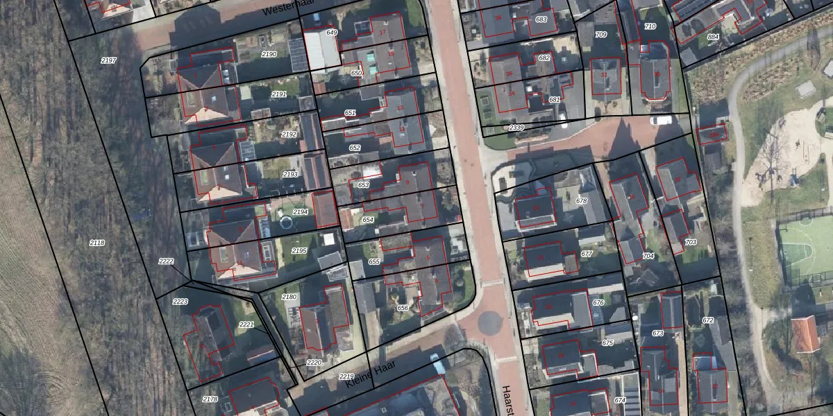 Haarstraat 7 is gelegen op kadastraal perceel EBG02H654. Deze kadastrale aanduiding is uniek en wordt gebruikt door het Kadaster om eigendomsrechten en andere zakelijke rechten vast te leggen. Het perceel maakt onderdeel uit van de kadastrale gemeente Eibergen.