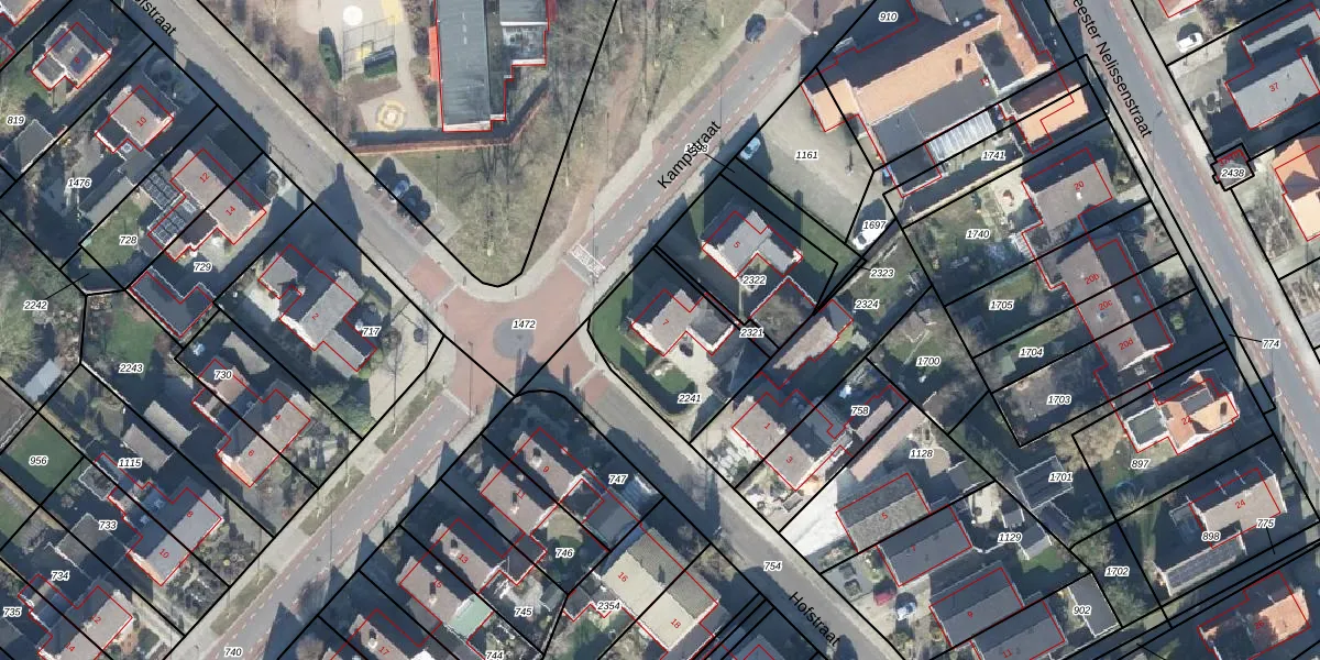 Het perceel waarop Kampstraat 7 staat heeft een oppervlakte van 428 m². Dit is een groot perceel. De perceeloppervlakte wordt geregistreerd door het Kadaster. Gedetailleerde informatie over de maten van dit perceel kunt u vinden in het rapport Kadastrale kaart met maatvoering van Kampstraat 7.