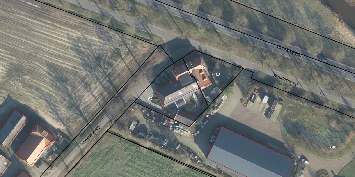 Het perceel waarop Kempersweg 1-a staat heeft een oppervlakte van 850 m². Dit is een groot perceel. De perceeloppervlakte wordt geregistreerd door het Kadaster. Gedetailleerde informatie over de maten van dit perceel kunt u vinden in het rapport Kadastrale kaart met maatvoering van Kempersweg 1-a.
