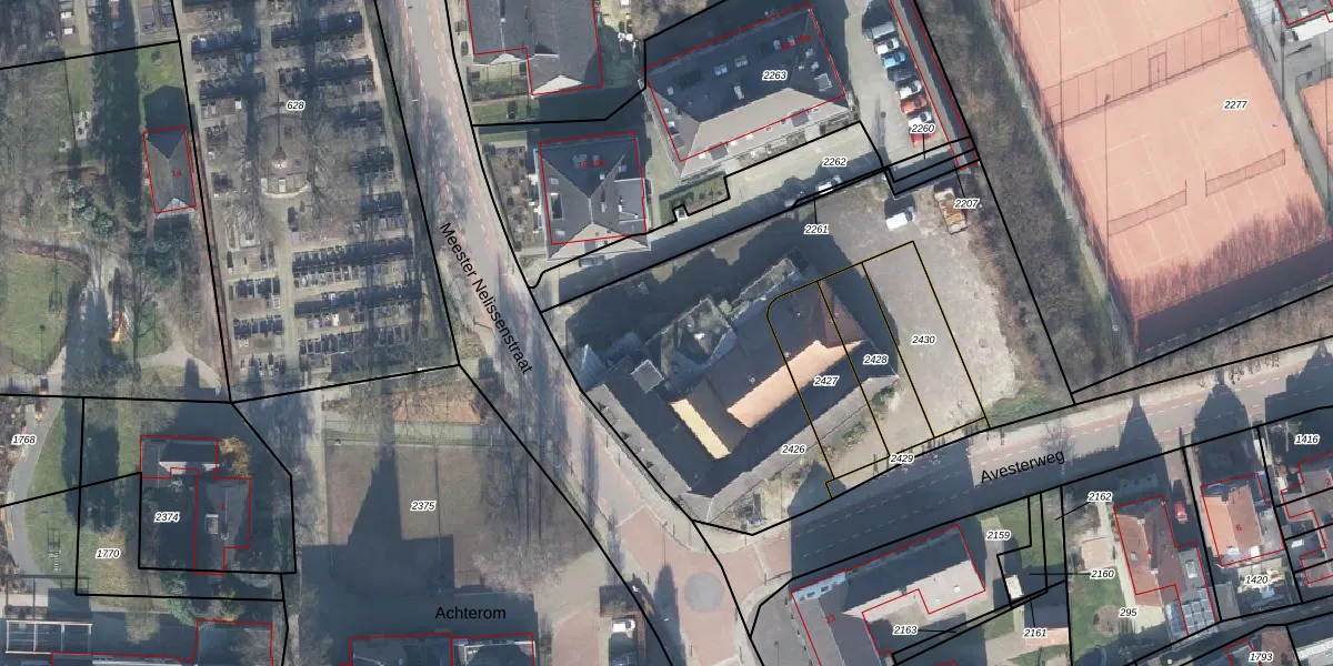 Het perceel waarop Meester Nelissenstraat 21-f staat heeft een oppervlakte van 1940 m². Dit is een zeer groot perceel. De perceeloppervlakte wordt geregistreerd door het Kadaster. Gedetailleerde informatie over de maten van dit perceel kunt u vinden in het rapport Kadastrale kaart met maatvoering van Meester Nelissenstraat 21-f.