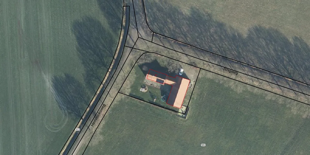 Het perceel waarop Ringweg 16 staat heeft een oppervlakte van 1315 m². Dit is een zeer groot perceel. De perceeloppervlakte wordt geregistreerd door het Kadaster. Gedetailleerde informatie over de maten van dit perceel kunt u vinden in het rapport Kadastrale kaart met maatvoering van Ringweg 16.