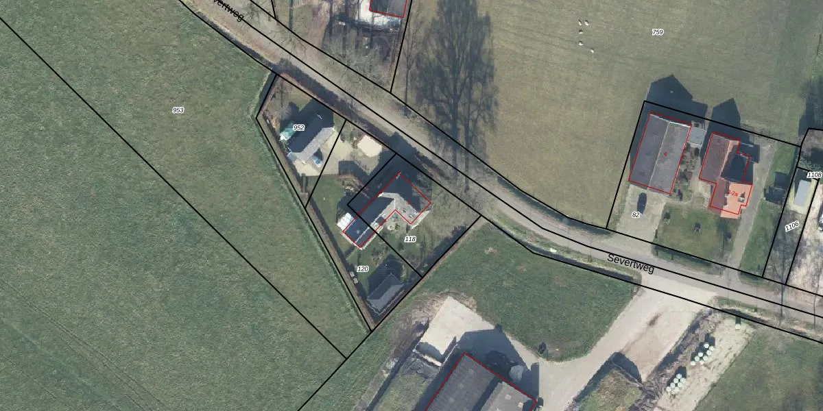Severtweg 5 is gelegen op kadastraal perceel EBG02W118. Deze kadastrale aanduiding is uniek en wordt gebruikt door het Kadaster om eigendomsrechten en andere zakelijke rechten vast te leggen. Het perceel maakt onderdeel uit van de kadastrale gemeente Eibergen.