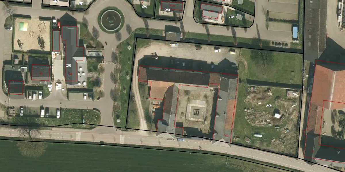 Het perceel waarop Gasthuis 23 staat heeft een oppervlakte van 5528 m². Dit is een zeer groot perceel. De perceeloppervlakte wordt geregistreerd door het Kadaster. Gedetailleerde informatie over de maten van dit perceel kunt u vinden in het rapport Kadastrale kaart met maatvoering van Gasthuis 23.