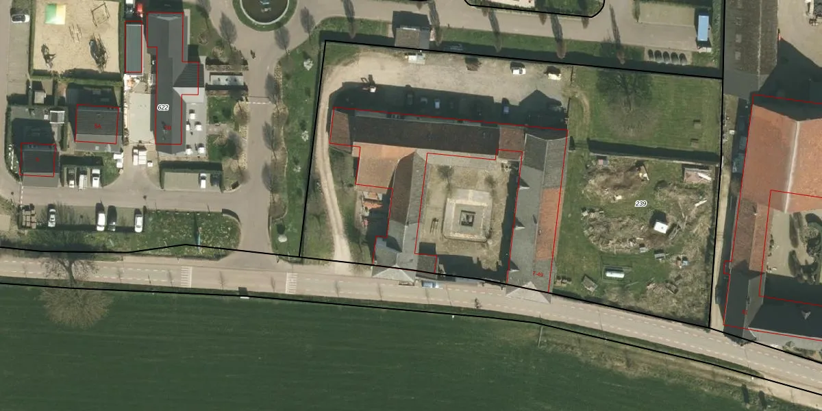 Het perceel waarop Gasthuis 39 staat heeft een oppervlakte van 5528 m². Dit is een zeer groot perceel. De perceeloppervlakte wordt geregistreerd door het Kadaster. Gedetailleerde informatie over de maten van dit perceel kunt u vinden in het rapport Kadastrale kaart met maatvoering van Gasthuis 39.