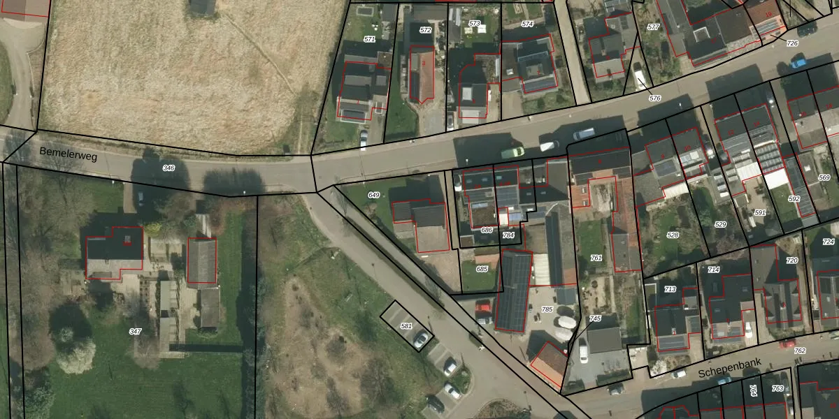 Gebruik de zoekbalk of klik op een perceel voor informatie over de adressen binnen dit perceel.