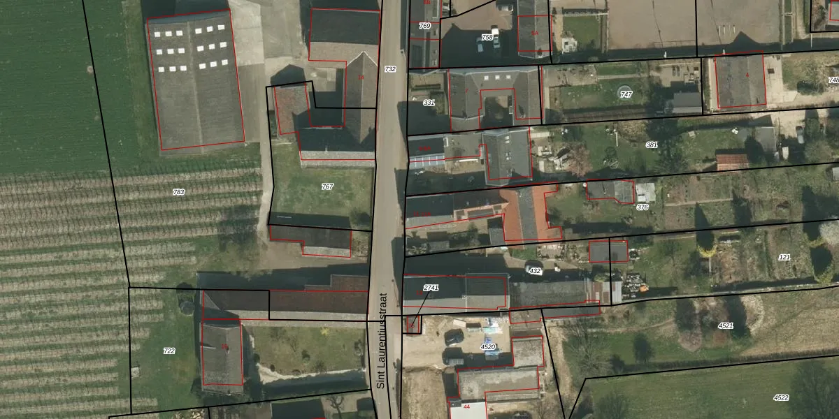Het perceel waarop Sint Laurentiusstraat 11 staat heeft een oppervlakte van 1845 m². Dit is een zeer groot perceel. De perceeloppervlakte wordt geregistreerd door het Kadaster. Gedetailleerde informatie over de maten van dit perceel kunt u vinden in het rapport Kadastrale kaart met maatvoering van Sint Laurentiusstraat 11.